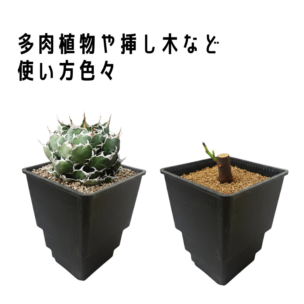 観葉植物の長期栽培に ─ フィカス、モンステラ、パキラなど、室内で長期間栽培する観葉植物では、根詰まりが最大の敵。スクエア型の形状により根域面積が約25%拡大し、植え替え頻度を大幅に削減できます。