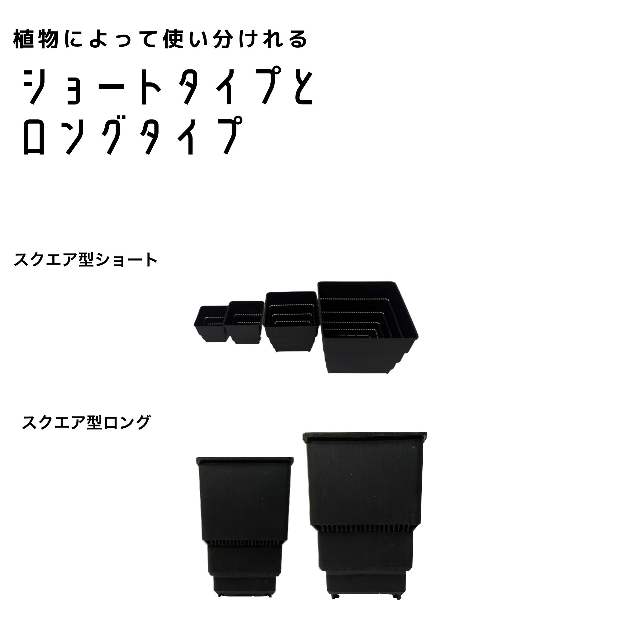 ■サイズ・スペック 実生などの小苗から親株まで、用途に合わせて選べる4サイズ展開です。 (※数値は 外径×内径×高さ mm )