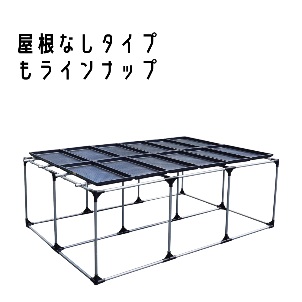 | 注意事項 | ・受注生産品のため、納期まで1〜2週間程度お時間をいただきます ・育苗箱、育苗トレイ、土、種などは別途ご用意ください ・屋根付きタイプの遮光ネット(2m×3m)は市販品をご活用いただけます ・設置場所の風通しや日当たりを考慮して配置してください ・定期的なメンテナンス(パイプの清掃、ジョイント部の確認)で長くお使いいただけます |