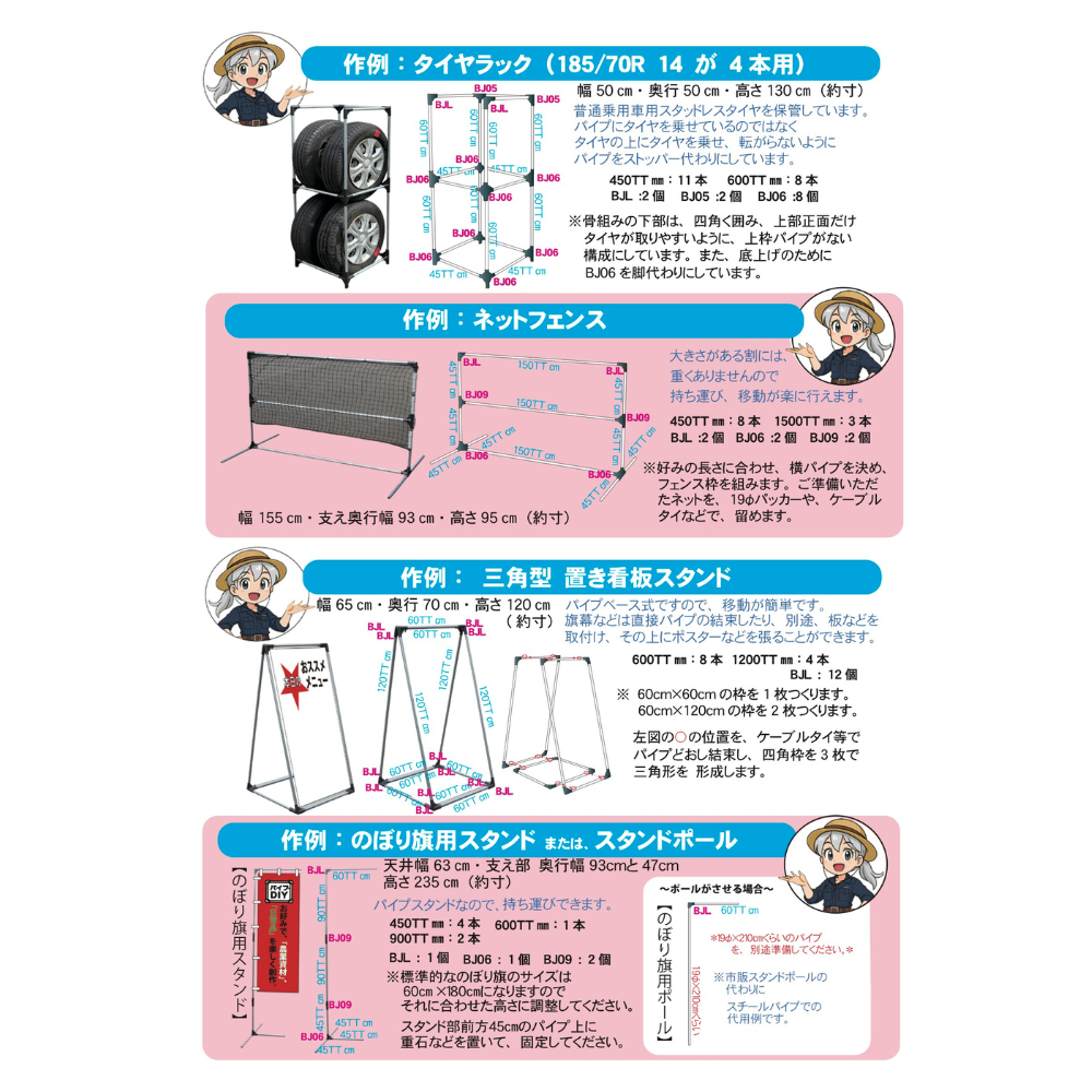 | 素材 | ・パイプ材質:19.1Φ亜鉛メッキスチールパイプ ・樹脂ジョイント:19φパイプ用専用ジョイント |