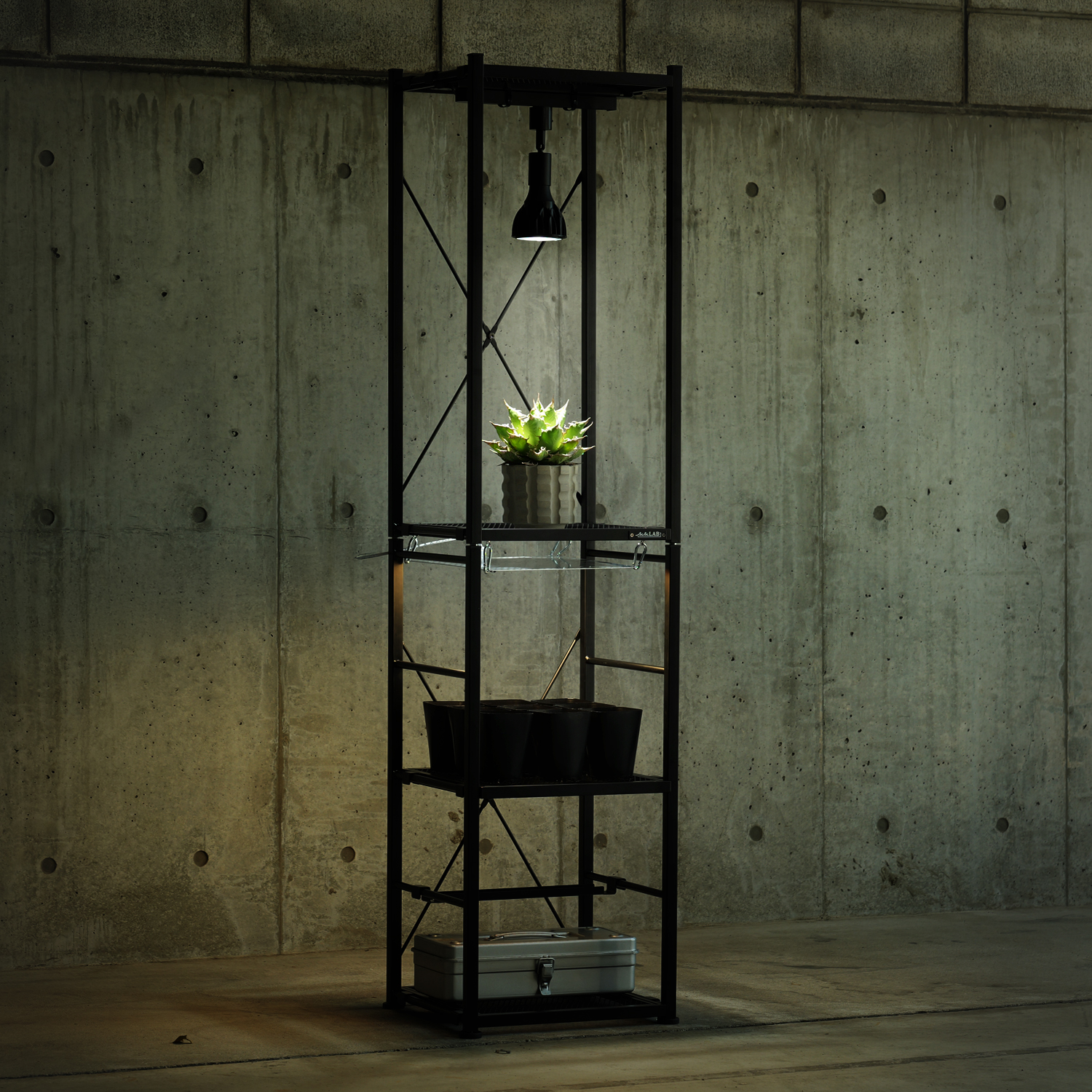 縦型ラックとしてだけでなく、横型シェルフとしても使用可能。植物の成長や季節に合わせてレイアウト変更でき、複数台を横に並べればギャラリーのような展示空間も実現します。同シリーズ製品と連結できるため、コレクションが増えても育成スペースを柔軟に拡張可能です。