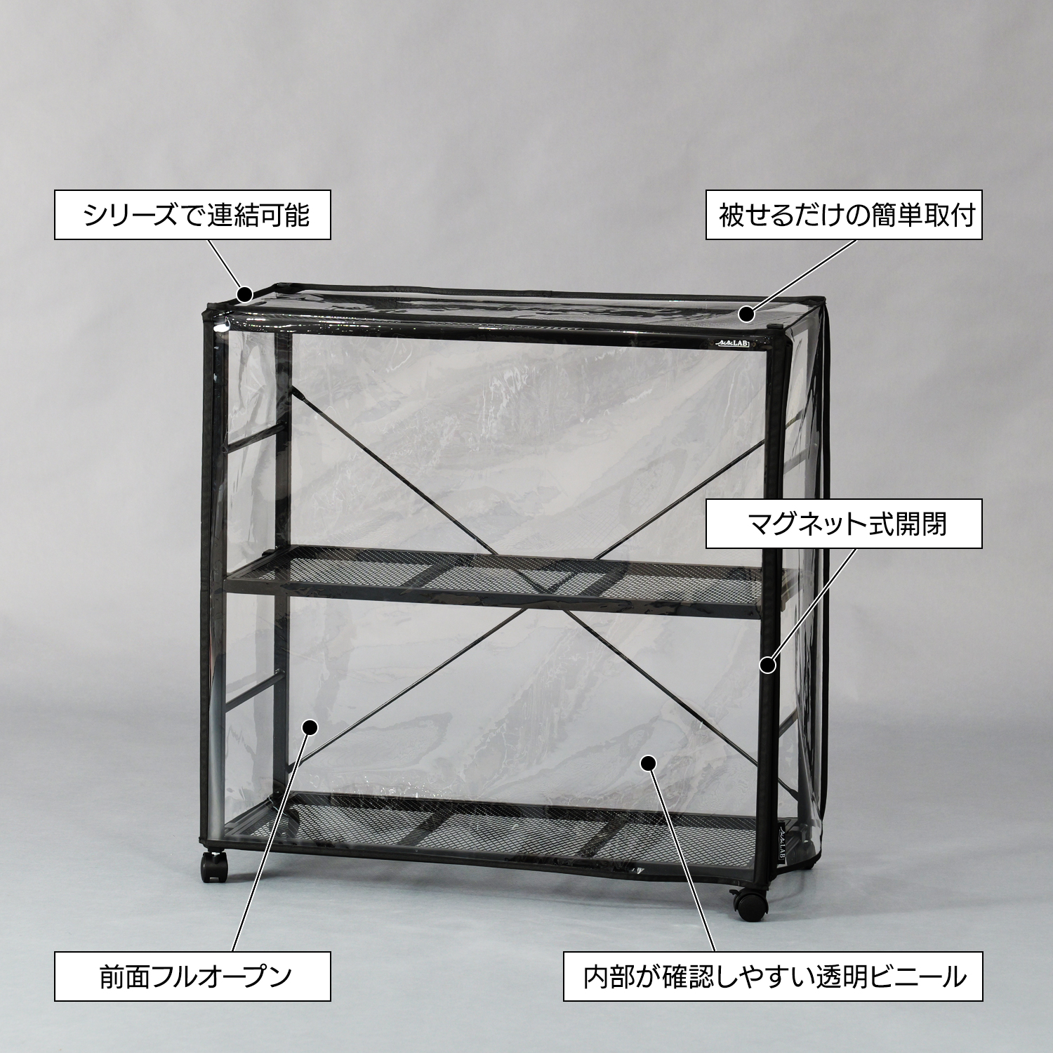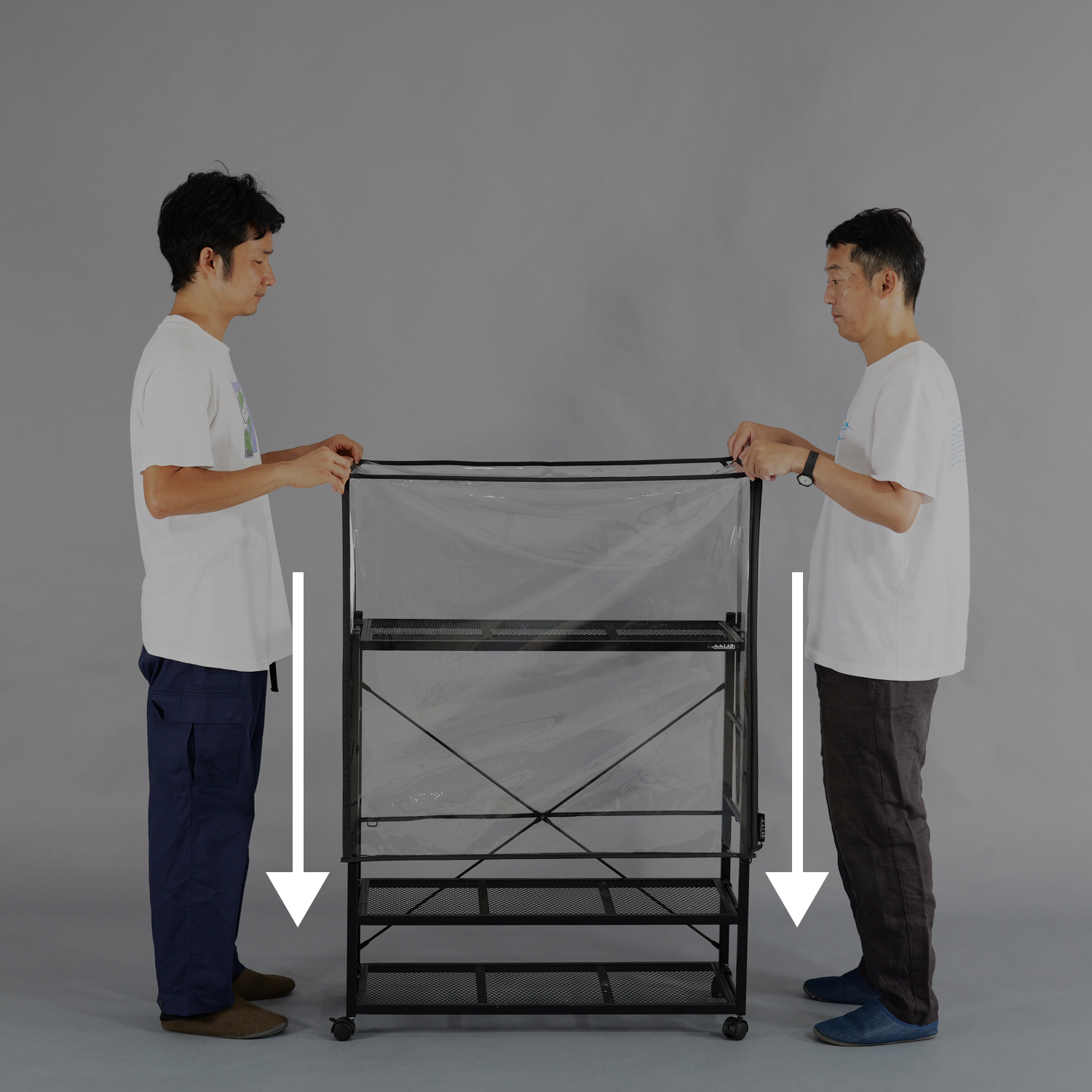 ビザールプランツラック(LPR-800)に完全適合する専用設計。幅85.5×奥行き36.5×高さ80.5cmのサイズで、ラックに上からかぶせるだけで簡易温室が構築できます。複雑な取り付け作業は一切不要、誰でも簡単に設置できます。