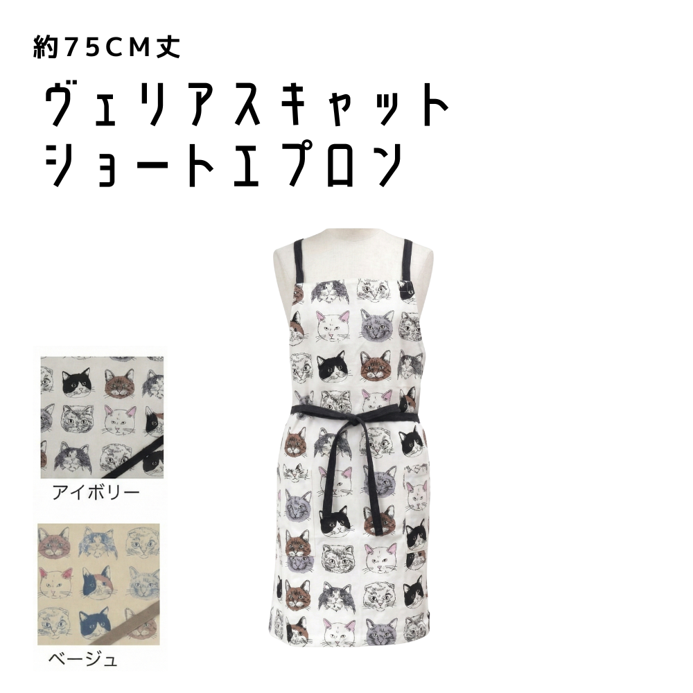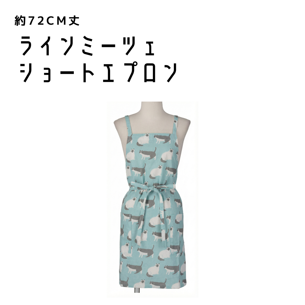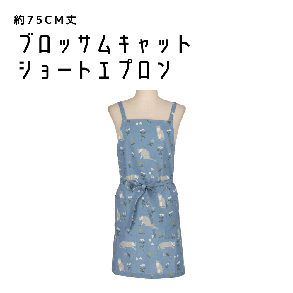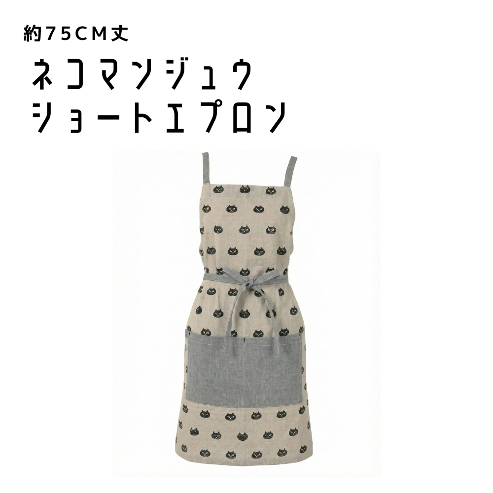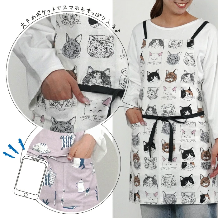 「にゃんこ柄で、毎日がもっと楽しく。綿100%のやさしい着心地、猫好きのためのショートエプロン」