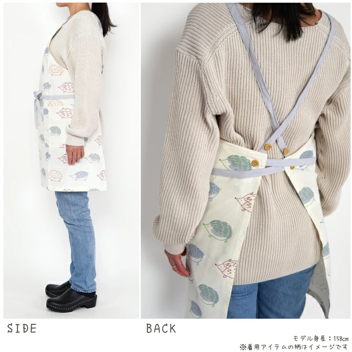 キッチン、カフェ、保育現場など、日常のあらゆるシーンで着用